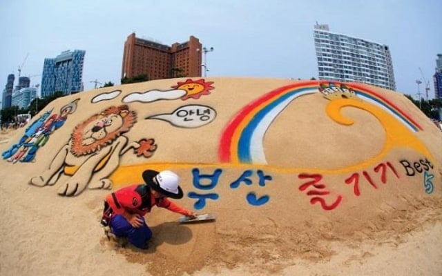 Tham gia lễ hội cát Haeundae là một trải nghiệm độc đáo và thú vị dành cho du khách khi đến bãi biển Haeundae – Hàn Quốc. Diễn ra vào mùa hè, lễ hội cát Haeundae thu hút hàng ngàn du khách và nghệ sĩ tạo hình cát từ khắp nơi. Tại đây, bạn sẽ có cơ hội chiêm ngưỡng những tác phẩm nghệ thuật tuyệt đẹp được làm từ cát, từ những bức tượng sống động đến những cấu trúc phức tạp.